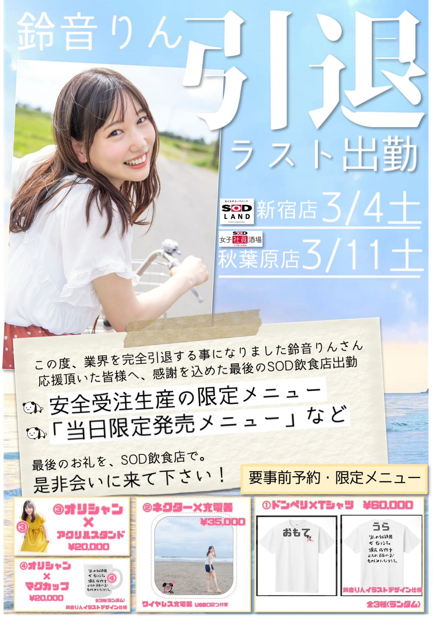 虽然宣布成为自由球员投入企划女优市场,也积极参与SOD女子酒场的活动,不过SOD Star专属出道的女优「铃音りん(铃音铃)」还是撑不下去了:
