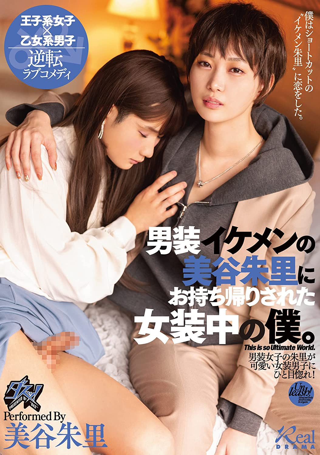 那ダスッ!(Das)呢?我们则是看到这支「男装イケメンの美谷朱里にお持ち帰りされた女装中の仆。」:干这就是我所谓脑洞大开的戏剧片了,有个男优名唤「小梅」,平时的兴趣就是做女装打扮在街头乱逛ー先别急着骂片商乱来,因为这小梅是个双插头,有时候会穿女装拍AV,有时候也会拍GAY片,所以穿女装在路上乱逛也很正常啦;而当他逛累了,找了间咖啡厅坐下来小憩一下时,有个五官非常秀气的短发男子美谷桑前来搭讪,小梅觉得屁股痒痒的,于是就和「他」去开房了:
