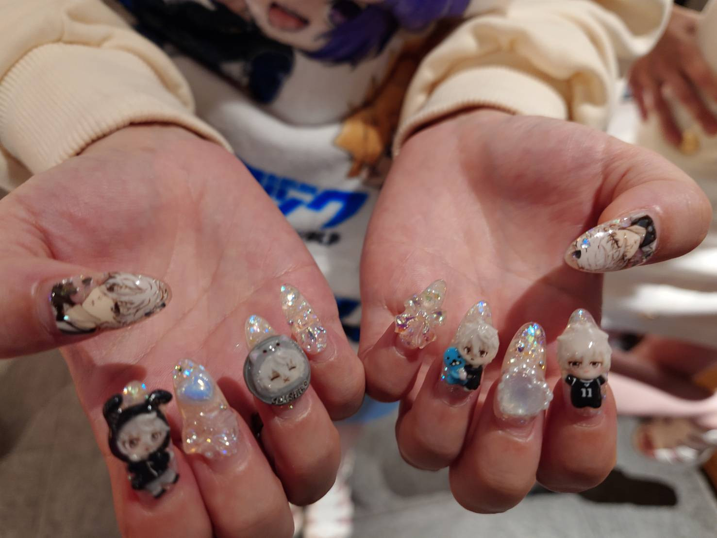 也难怪30公分的摊位挤得水泄不通。不过看她服务客人抓得笑呵呵说看到大家「有精神的样子」很有成就感时我是注意到了她的指甲,上面怎么是⋯卡通图案啊?