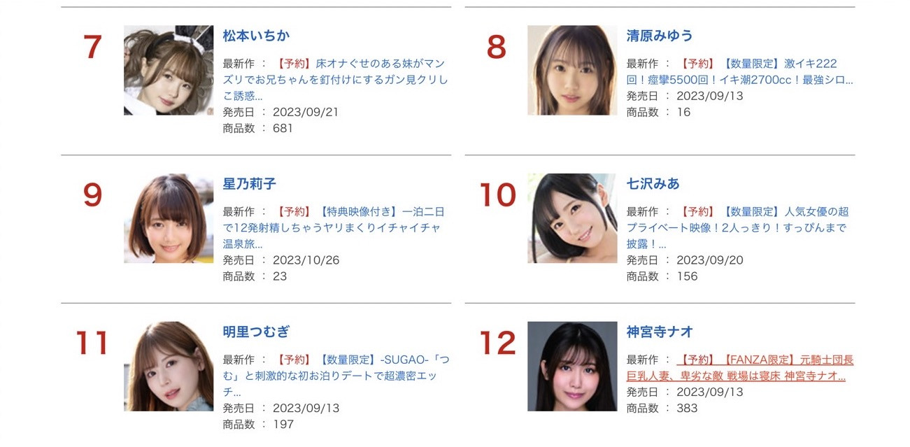 马上来看FANZA(DMM)刚刚公布8月销售排行榜!