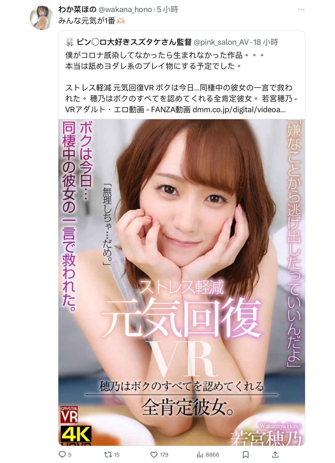 一块儿来看这个于X上出现的新帐号(https://twitter.com/wakana_hono),她的名字叫わか菜ほの(若菜穂乃),经纪公司LIGHT的人〜