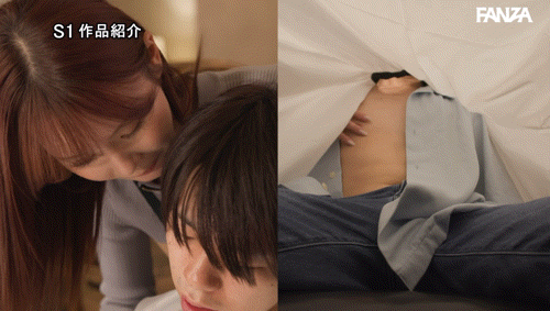 其实这支作品特别的地方要看封面的左下角,是「AV初の2画面痴女作」,那是什么意思?我想这应该是从痴汉片找到的灵感,我们都是S1最近很热衷拍摄电车痴汉的作品,导演会用两个视窗的方式一面特写男优的咸猪手一面捕捉女优的反应,有时候可能制作经费多一点还会变成三框,而现在,miru这支作品也采用了这种演出方式: