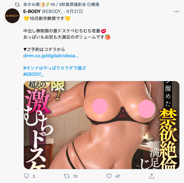 這樣的女人絕對不缺炮打,所以在完成與SOD短暫的專屬合約後,她很興奮地宣布「接下來會有很多作品上架喔」,我是完全不懷疑她的戰鬥力,也相信以她事務所的能力接下來會有很多片商願意給這位大隻佬屠殺男優的機會,距離2022年還有3個月的時間,希望我們不會聽到有男優馬上風的消息〜